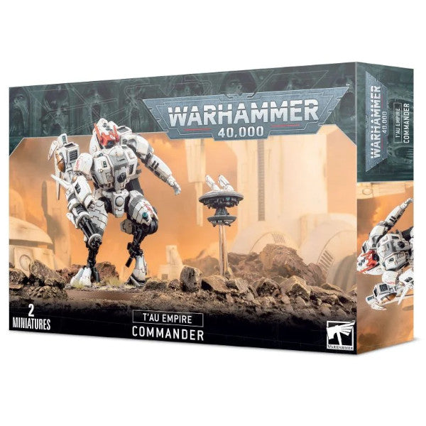 The Warhammer 40k T’au Empire Commander multi-part plastic kit gives you everything you need in order to build one T’au Commander, in either an XV-85 Enforcer Armour Crisis Battlesuit or an XV86 Coldstar Battlesuit. There’s an immense number of options available in the box – different heads, engines, leg and arm assemblies – and a ton of weapons! An airburst frag projector, a plasma rifle, a flamer, a fusion blaster, a cyclic ion blaster, a burst cannon (plus upgrade kit) and a missile pod. Included is a drone, which can be assembled as a gun, shield or marker drone.