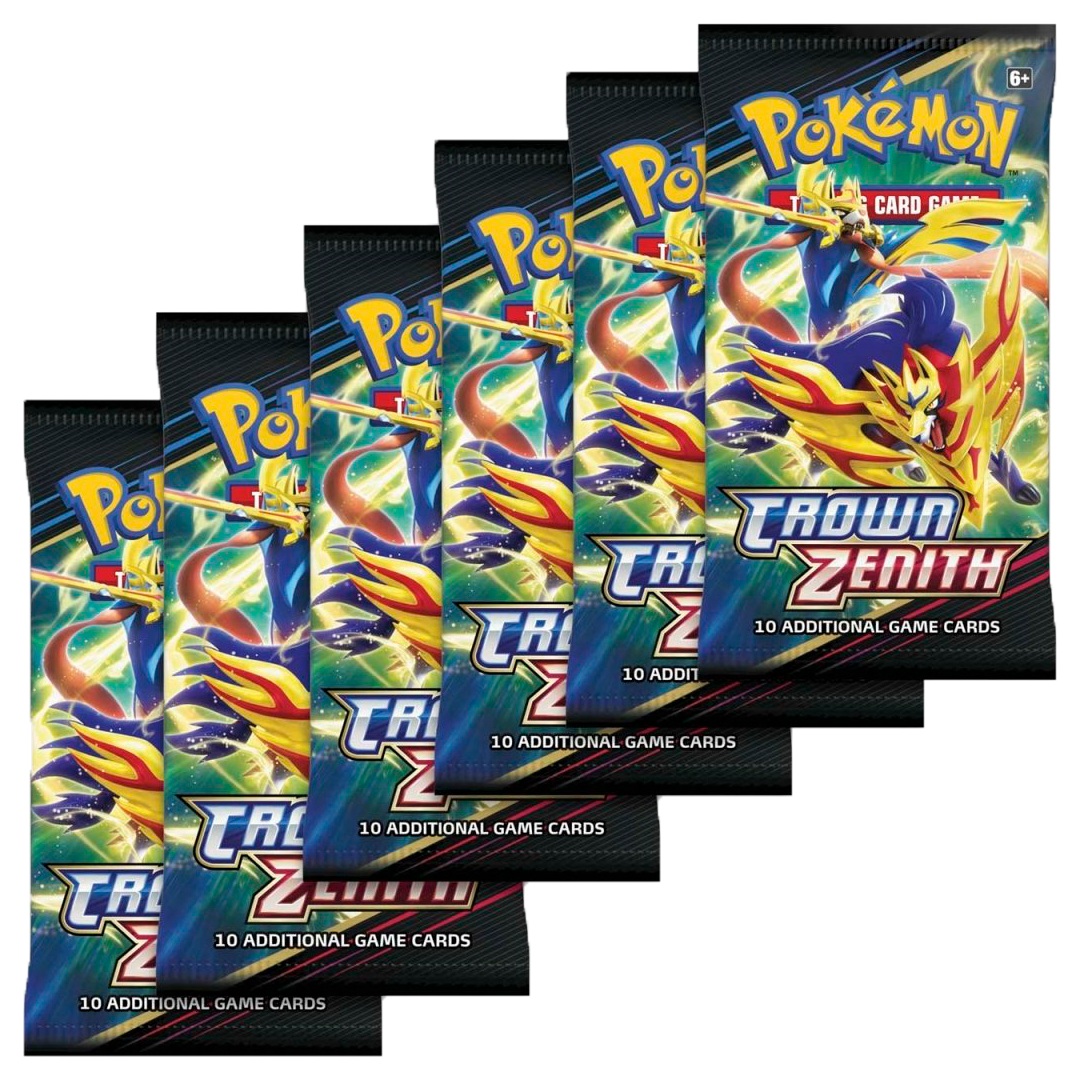 The Legendary heroes Zacian and Zamazenta shine with new VSTAR Powers, and an all-star assembly of Pokémon and Trainers arrive to celebrate the era of Pokémon V! Discover dazzling special illustrations in the Galarian Gallery, and wield the strength of rare and powerful Pokémon, including Charizard as both a Pokémon VSTAR and Radiant Pokémon. Many more Pokémon have their own tales to tell in battle as the Sword & Shield Series reaches its towering peak in the TCG: Crown Zenith expansion!