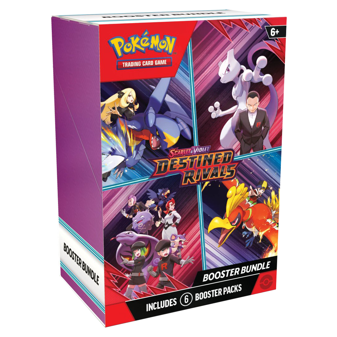 Pokémon Trainers, be on high alert! The nefarious Team Rocket is setting its latest plan into motion, and heroic Trainers are racing to stop it. Join forces with the likes of Cynthia and Garchomp ex, Ethan and Ho-Oh ex, or Arven and Mabosstiff ex… Or reconsider your loyalties and fight alongside Team Rocket’s Pokémon like Mewtwo ex—under the command of Giovanni! Choose a side, assemble your allies, and battle boldly in the Pokémon TCG: Scarlet & Violet—Destined Rivals expansion!