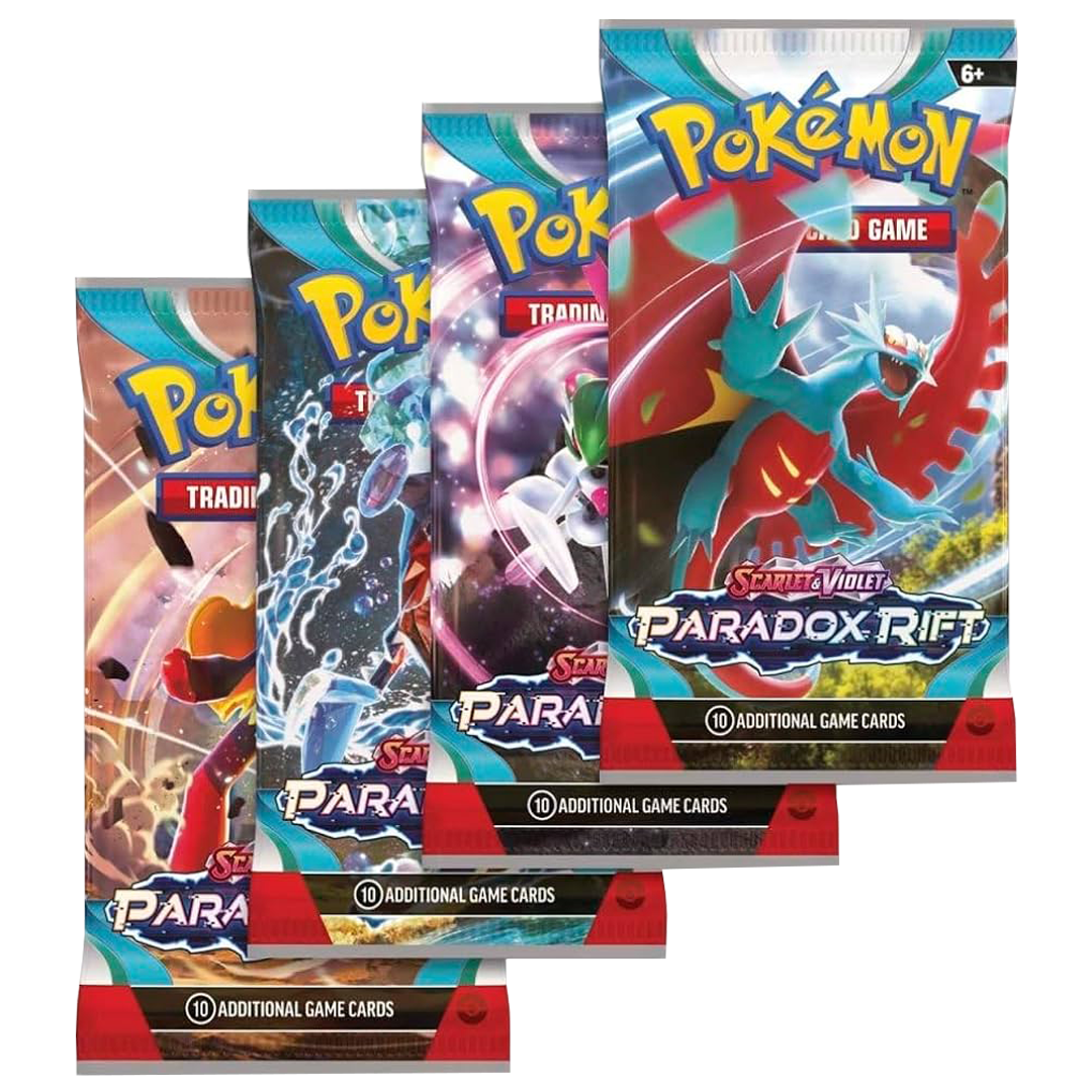 Dive into the clouds and explore a land that appears to be unbound by time! With ferocious attacks, Ancient Pokémon like Roaring Moon ex and Sandy Shocks ex appear alongside artificial Future Pokémon like Iron Valiant ex and Iron Hands ex. Meanwhile, Garchomp ex, Mewtwo ex, and others Terastallize to gain new types, as Armarouge ex, Gholdengo ex, and more Pokémon ex join the fray. Adventure awaits as timelines collide in the Pokémon TCG: Scarlet & Violet—Paradox Rift expansion!