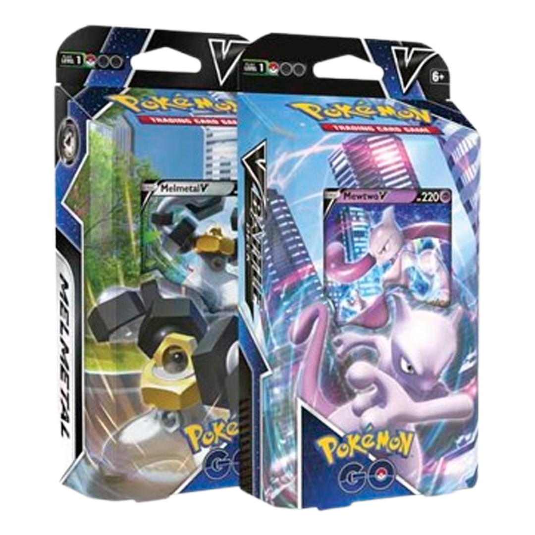 Unleash mental might or metal mayhem with a deck led by Mewtwo V or Melmetal V! Mewtwo V leads an elusive team of Psychic types, and Melmetal V brings the crushing power of Metal types, so you can land quick hits turn after turn, keep Energy in play, and master all the tricks of these two V Battle Decks!